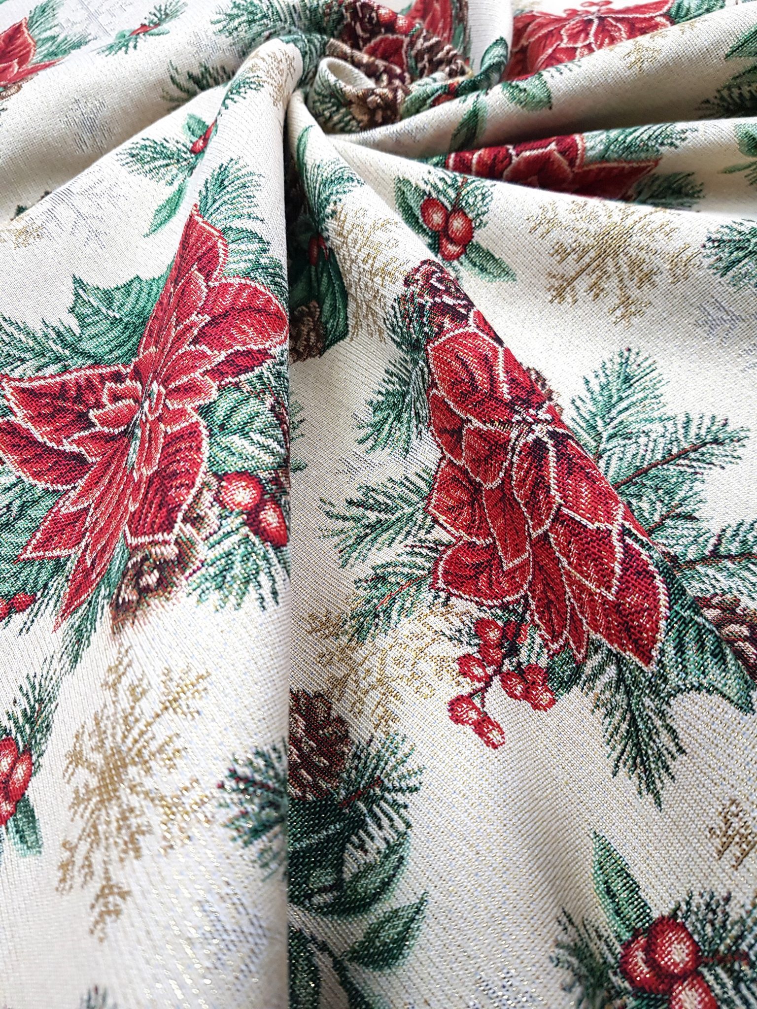 Transformă masa de sărbătoare într-o experiență elegantă cu materialul nostru brocard special destinat fețelor de masă. Acest brocard combină un design sofisticat cu performanță practică, ideal pentru ocazii cât și utilizare uzuală.