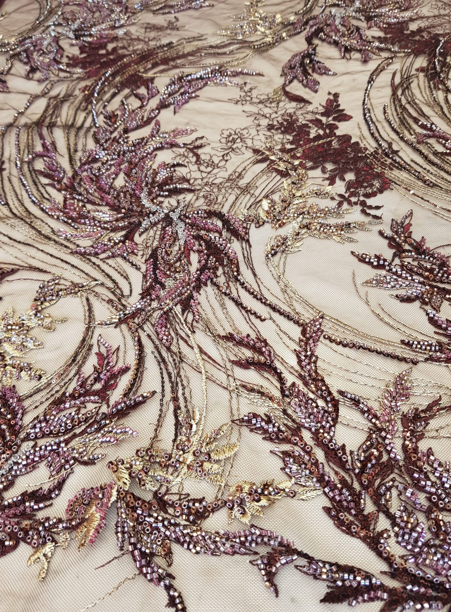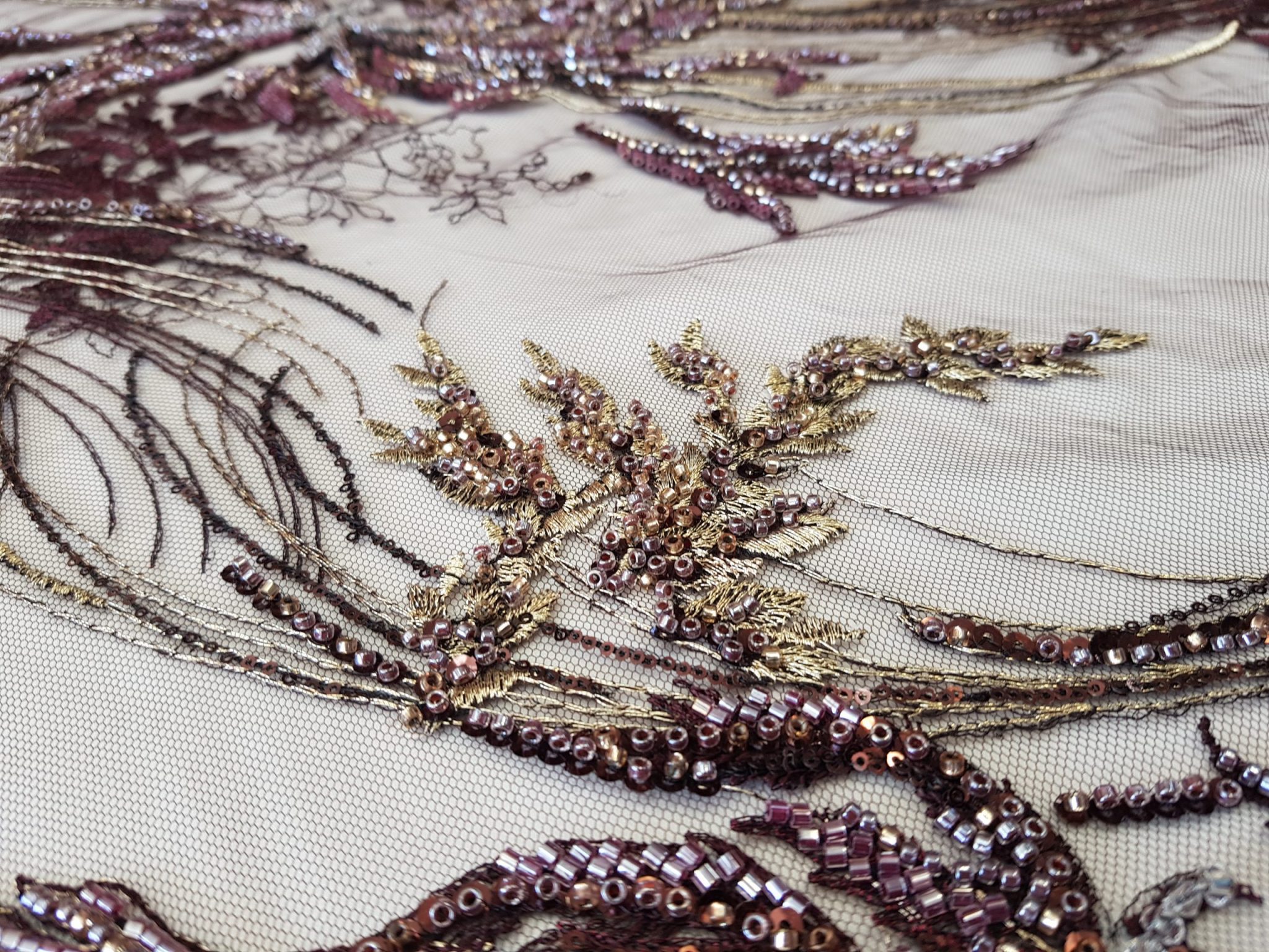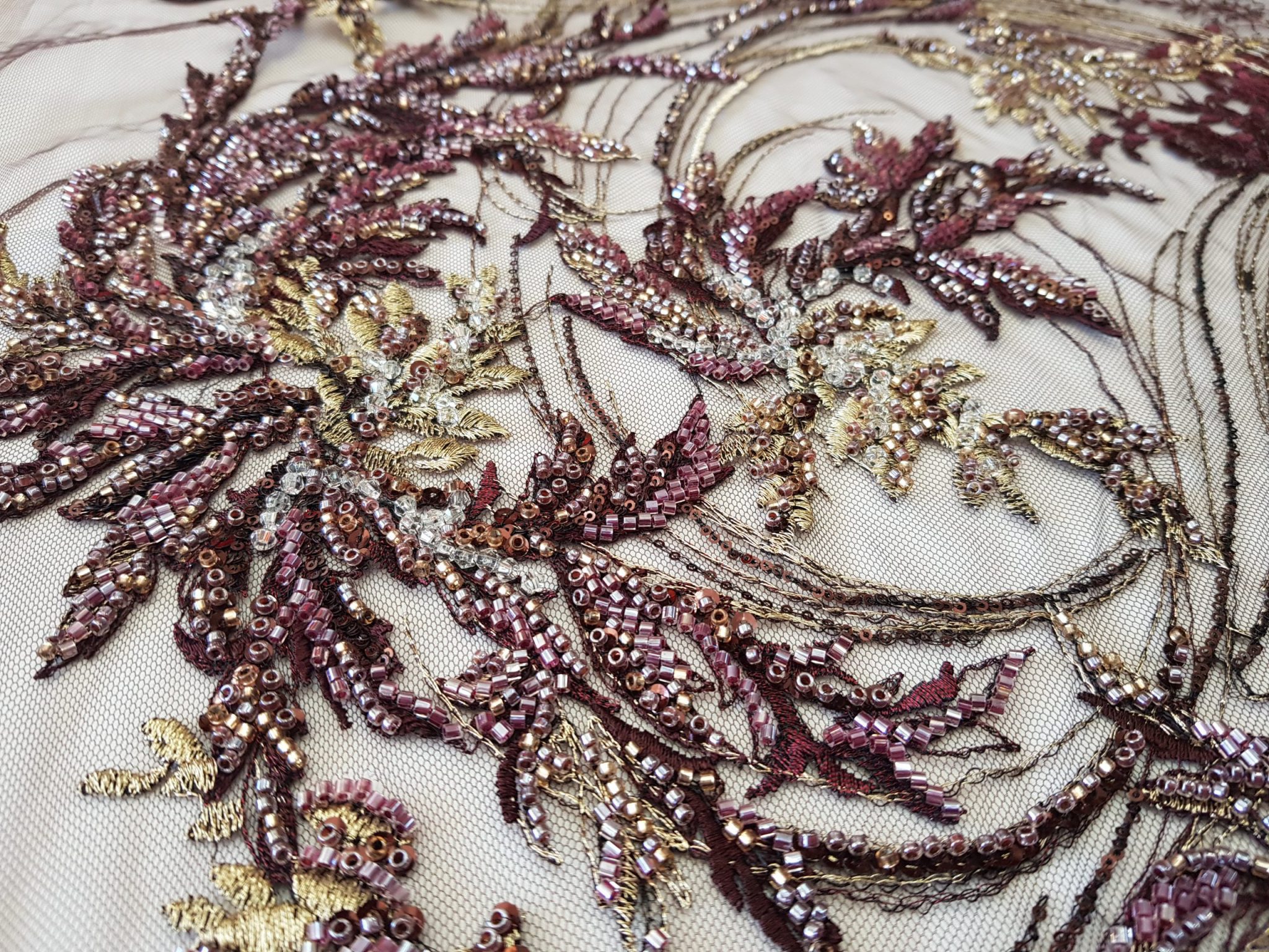 Broderie pe tull vișiniu