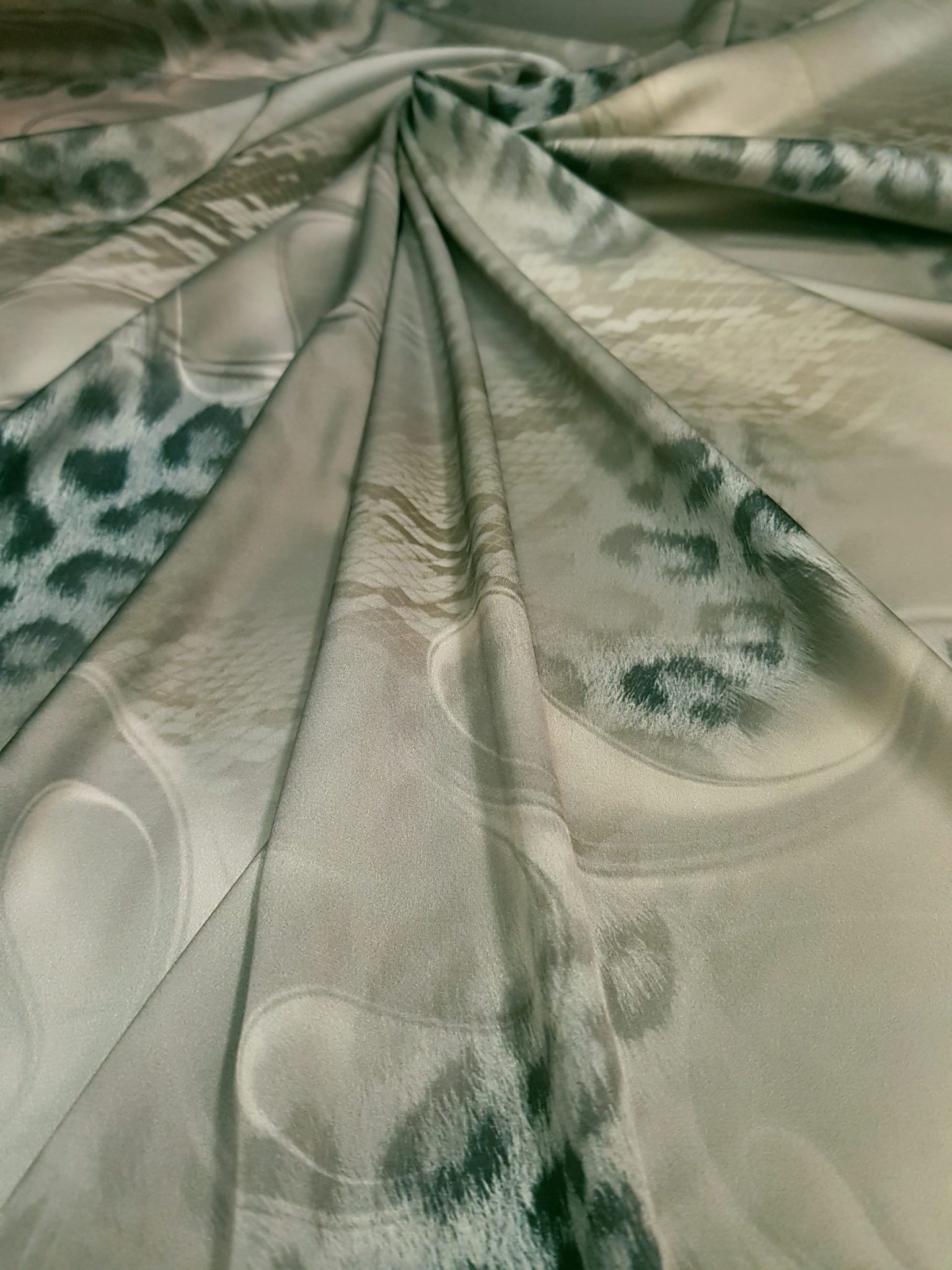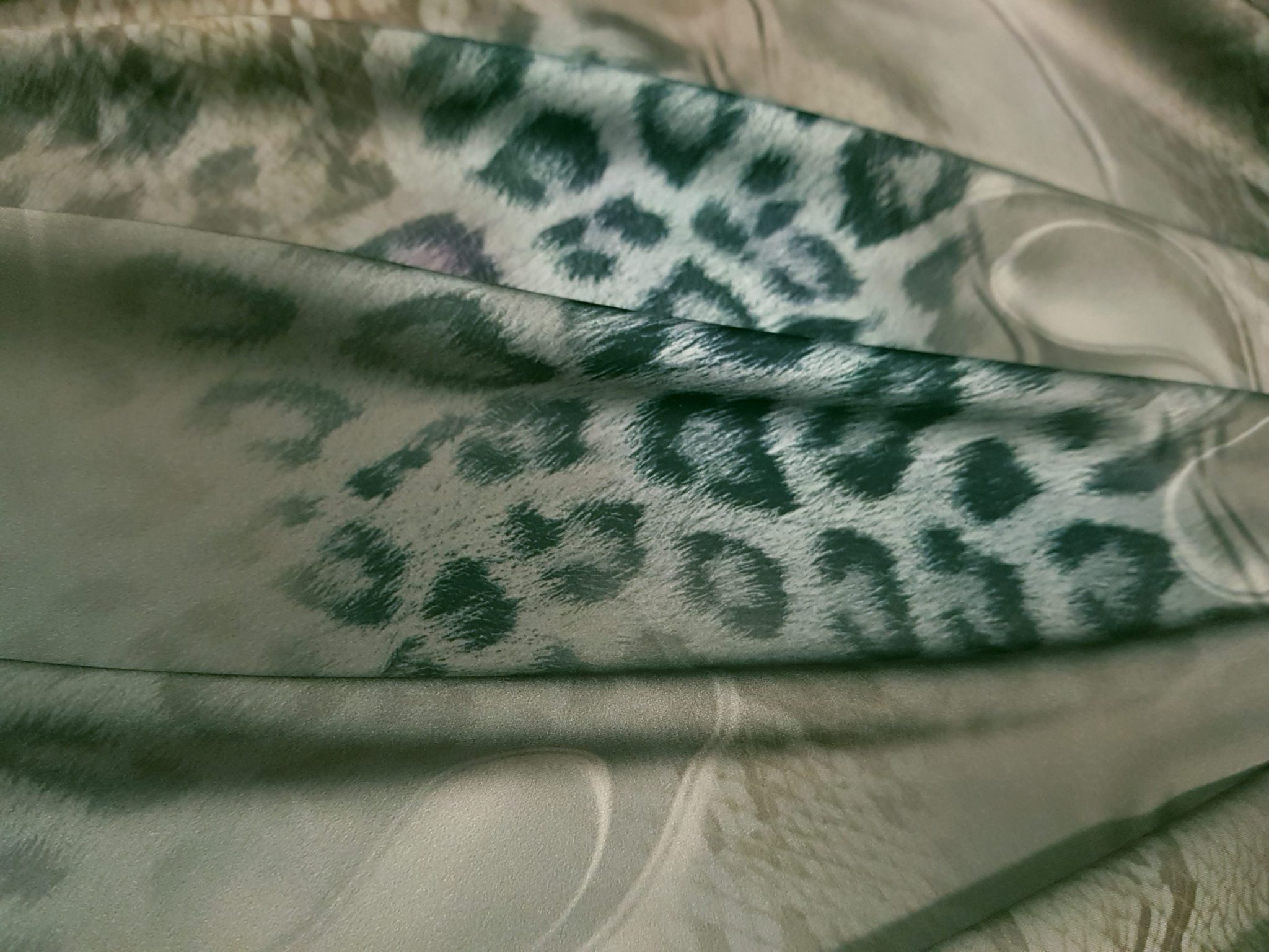 Aspect: Luciu natural, specific mătăsii, care pune în valoare imprimeurile artistice și culorile vii.