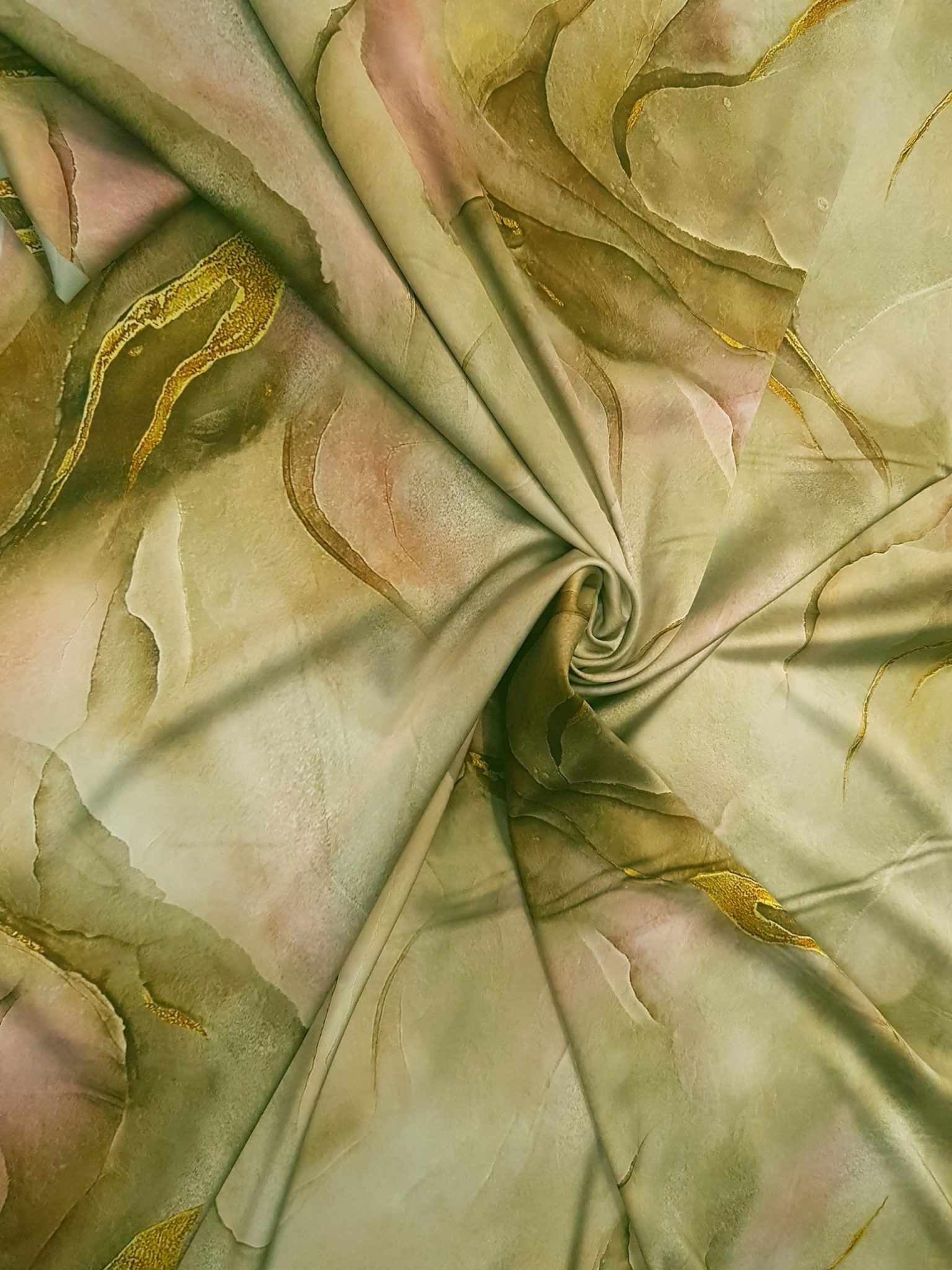 Aspect: Luciu natural, specific mătăsii, care pune în valoare imprimeurile artistice și culorile vii.