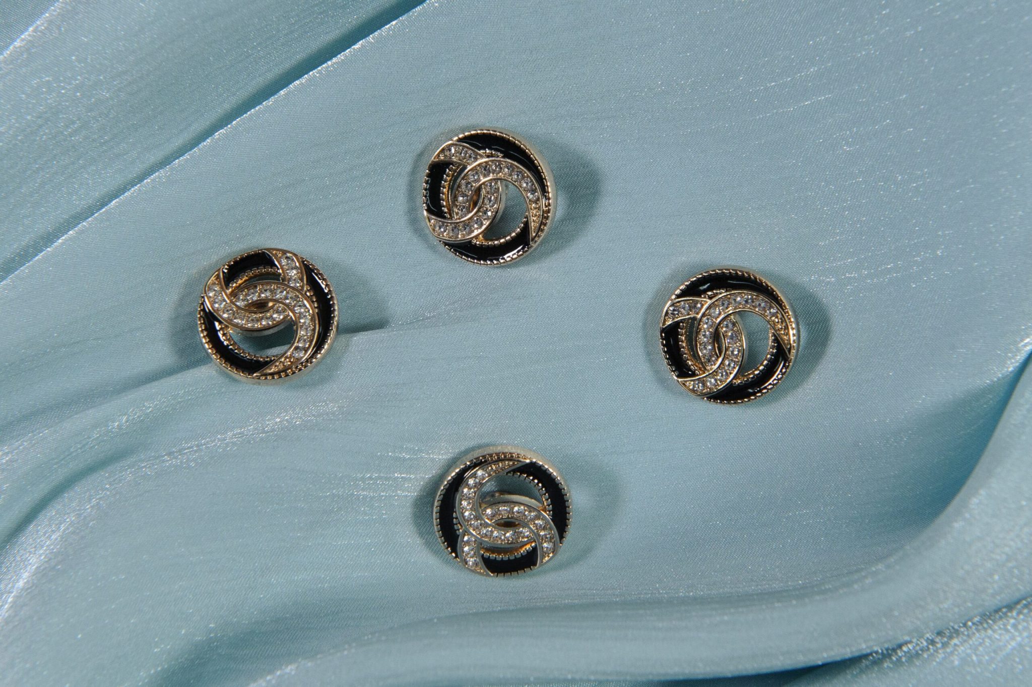 Nasturi metalici tip bijuterie cu strasuri, având dimenșiunea de 2 cm, pentru cusut. Acesti nasturi sunt perfecti pentru a accesoriza o mare vărietate de tînute, dar și pentru a da un plus de stralucire pieselor vestimentare mai vechi.