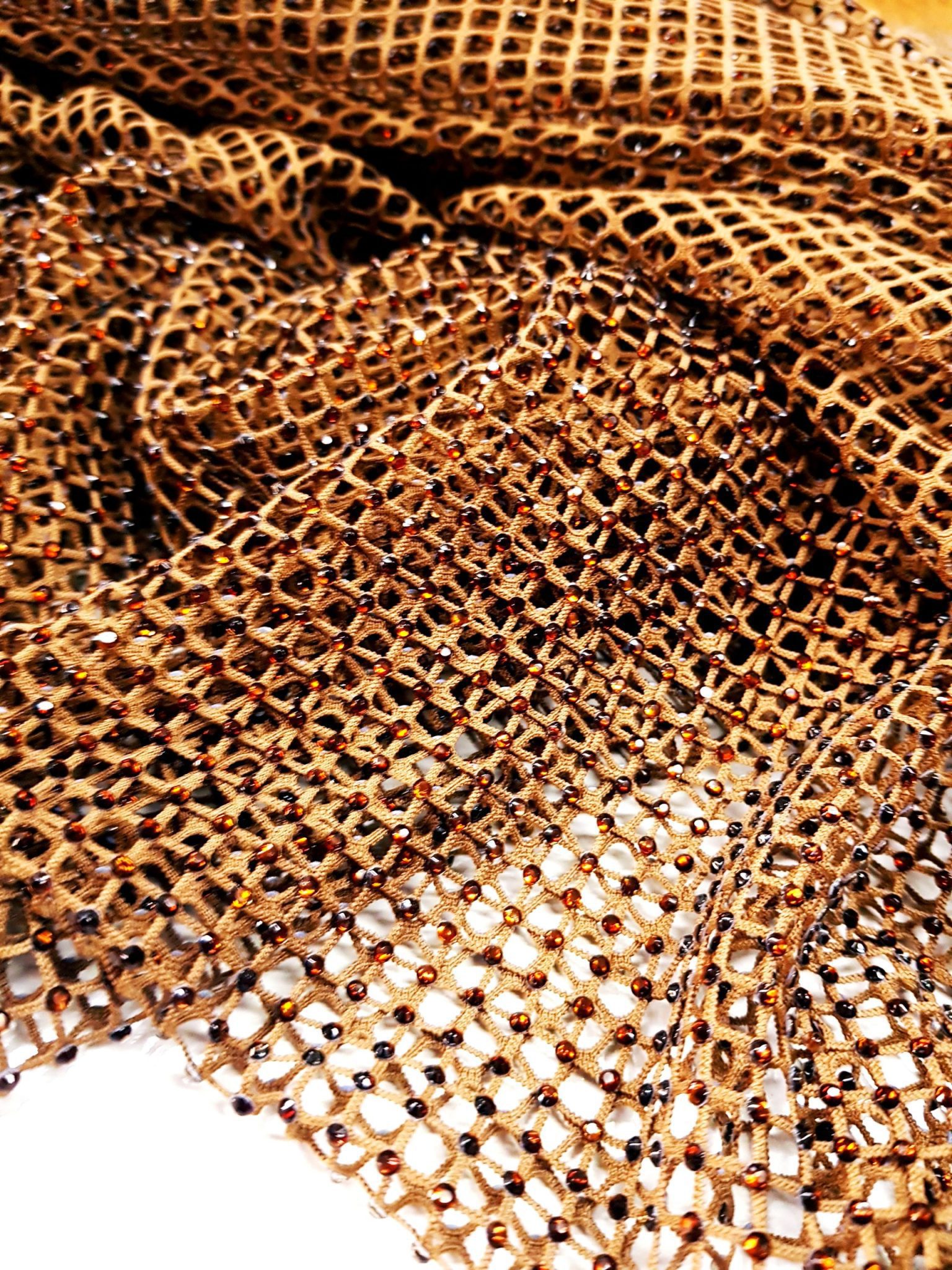 Material elegant și sofisticat: Țesătură de tip plasă fină (mesh), moale și elastică, ideală pentru creații moderne și spectaculoase.