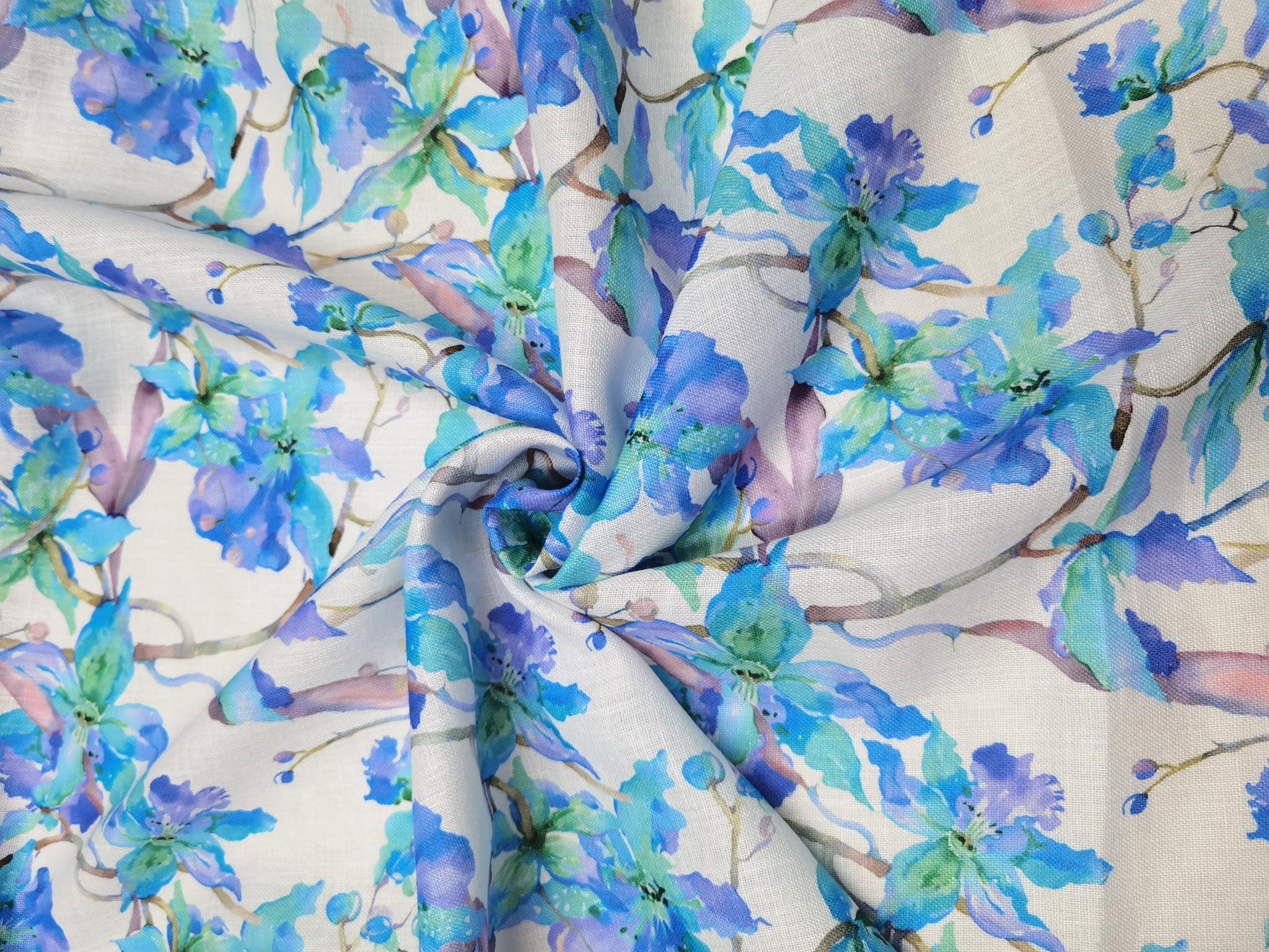 Țesătura imitație de in imprimată este un material ușor ,răcoros, cu o cadere lejeră și ușor elastic .Din această țesătură se pot confectiona rochii de vară ,salopete ,pantaloni de vară ,etc. fiind un material plin.