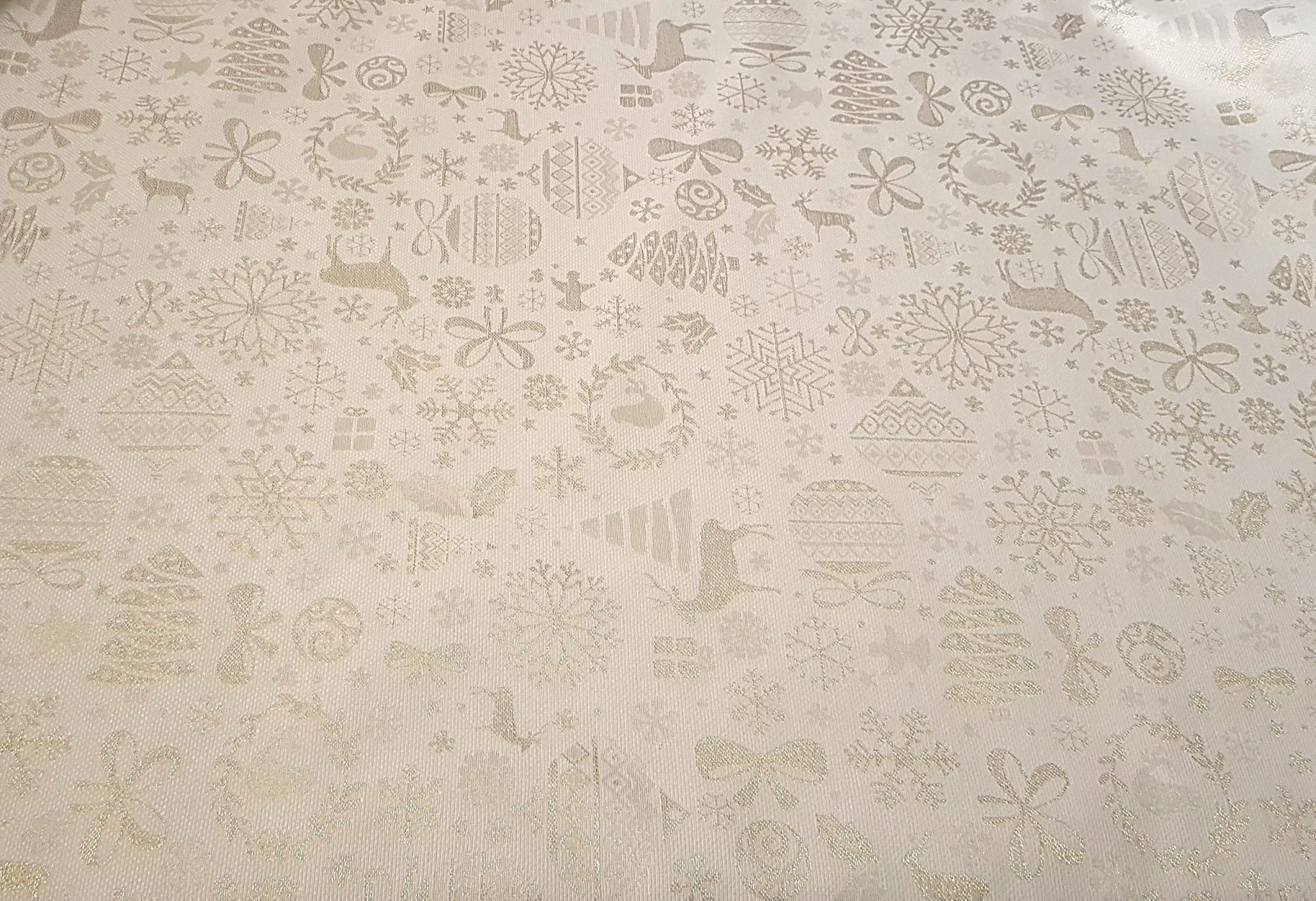 Țesătura cu motive de Crăciun este un material rezistent atât la spălare cât și la păstrarea culorilor,este potrivită pentru decorațiunile de sărbători, fețe de masă, perne decorative.